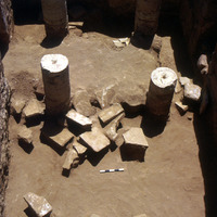 Paving stones of upper floor collapsed over baptistery. Area X.