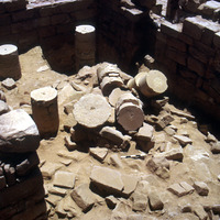 Paving stones of upper floor collapsed over baptistery. Area X. Sq. E3; Locus 30B