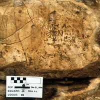Wall LL, [Stonemason's marks?]. Sq. II; Locus 02