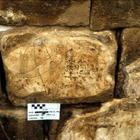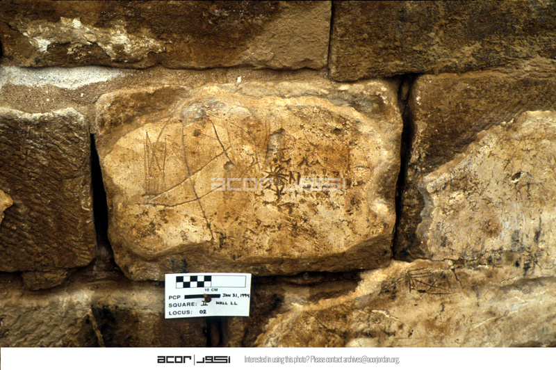 Wall LL, [Stonemason's marks?]. Sq. II; Locus 02
