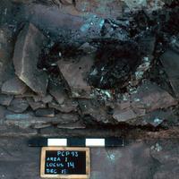 Scroll room: smaller archive area - stone shelf. Area I. Locus 14