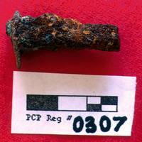 Nail with diamond-shaped head; cu/ cu alloy + iron - Sq. B1. Loc. 07