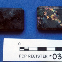 Two rectangular cubes (inlay for archival box?); glass - Sq. I. Loc. 12A