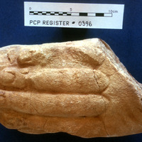 Fragment of statue, hand; sandstone - Sq. L2. Loc. 02