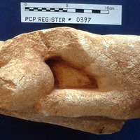 Fragment of statue, hand; sandstone - Sq. L2. Loc. 02