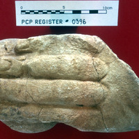 Fragment of statue, hand; sandstone - Sq. L2. Loc. 02
