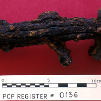 Pierced bar with hooked tang; iron - Sq. J2. Loc. 11