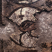 Damaged mosaic depicting an ostrich - North Aisle