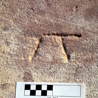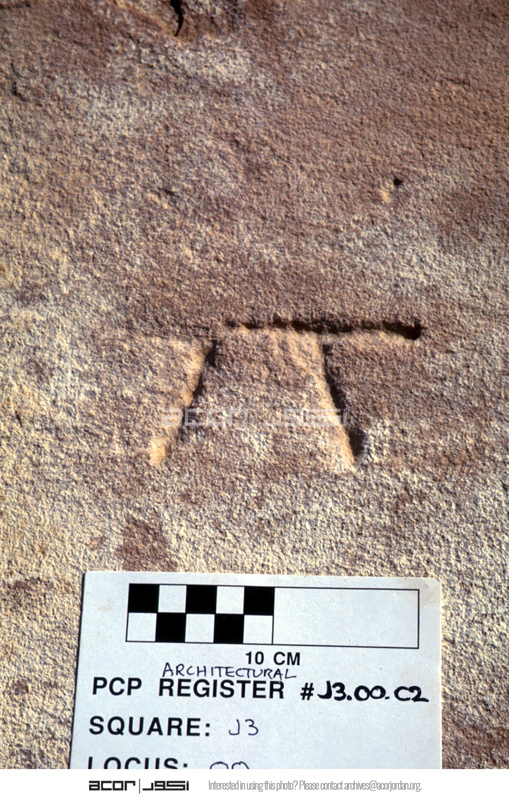 Close-up of stonemasons mark. - Sq. J3. Lapid. Locus 00/C2.