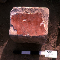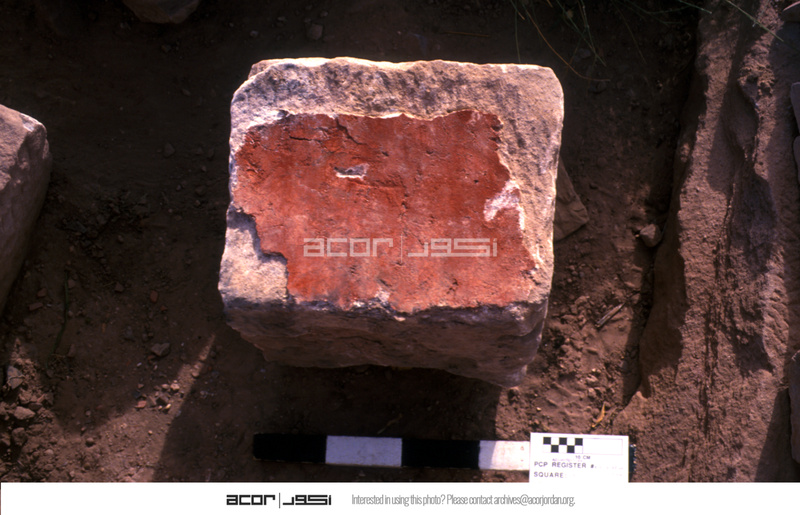 Ashlar with red paint. - Sq K3. Lapid. Locus 17/Ap106 = V104.