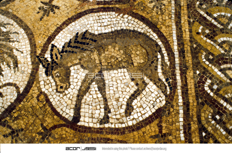 Mosaic depicting a donkey - North Aisle. View from above (to east)