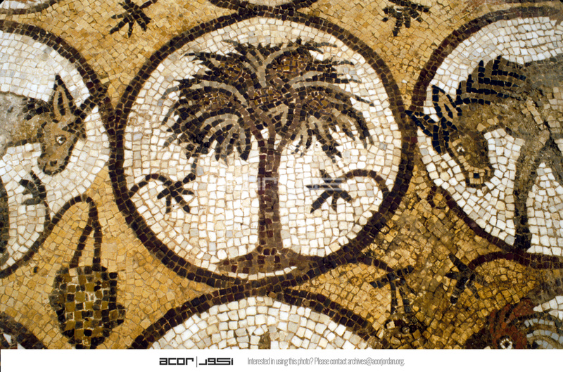 Mosaic depicting a tree - North Aisle. View from above (to east)