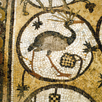Mosaic depicting a crowned crane or phoenix - North Aisle. View from above (to east)
