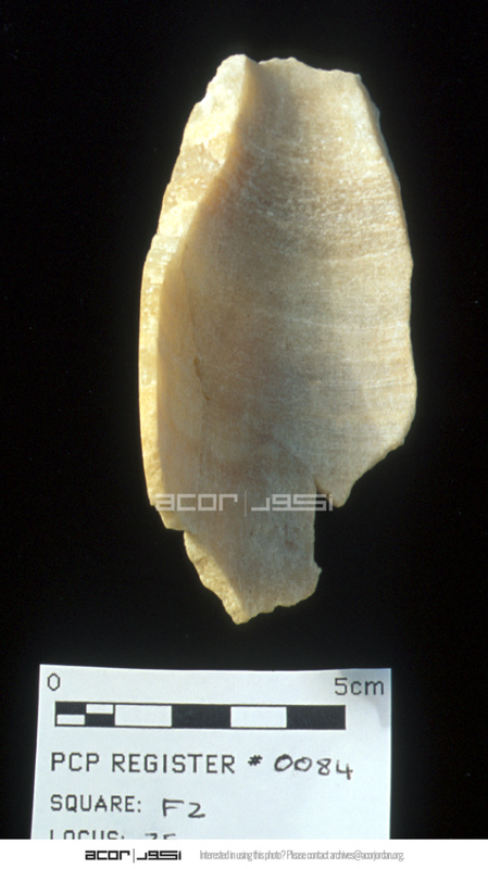 Reg # PCP.0084. Alabaster vessel frag. - Sq. F2. Studio. Locus 25/Pail 66/FN1.
