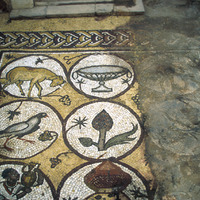 North aisle / Eastern end. Mosaics after initial water clean. View to east. ***15 - 16 W/out board.
