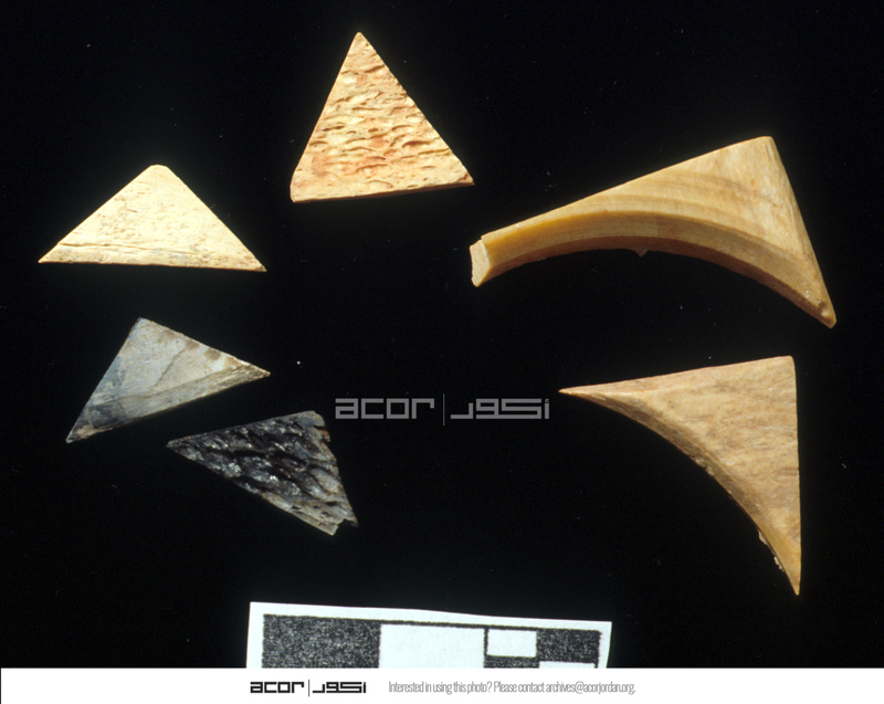 Worked bone inlay pieces.