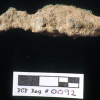 Pre-conserv. Photo of Cu Alloy object. - Sq. C1. Studio. Locus 19/Pail 51/FN6. Reg #PCP.0092