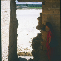 Sharry looks out a window in a chamber in Qasr Qarun to Fayoum