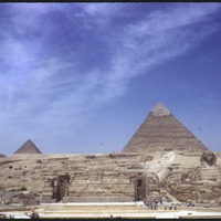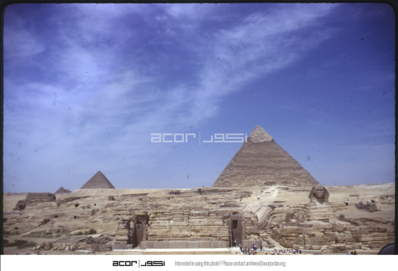 Sphinx, toward north, great pyramid & 2nd pyramid (Chephren)