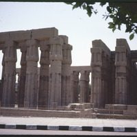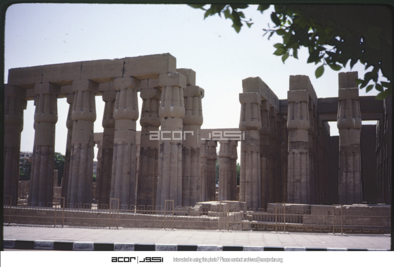 View from east of Luxor Temple and papyrus bud columns in court of Amenhotem III
