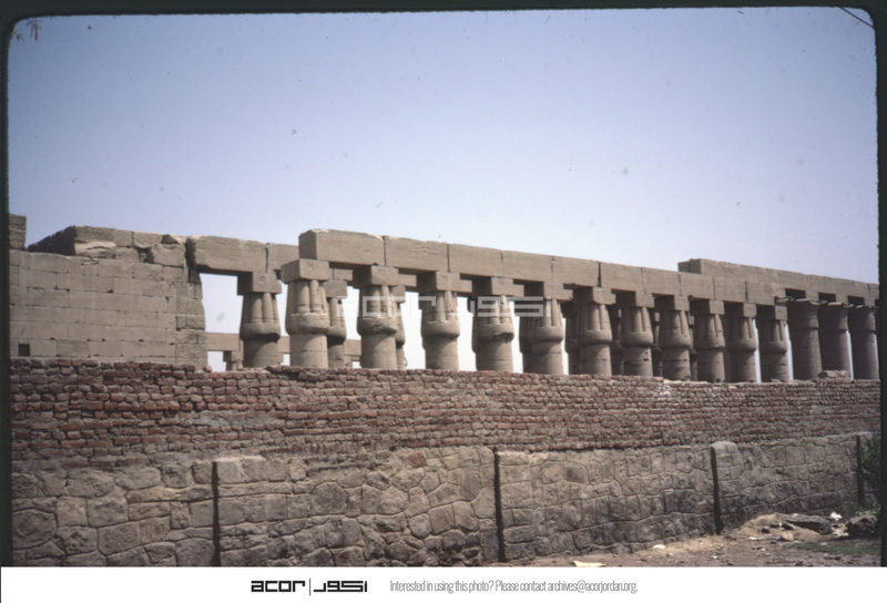 View from east of Luxor Temple and papyrus bud columns in court of Amenhotem III
