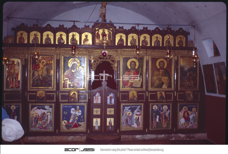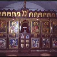 Iconoclast in old Greek Church of shepherd's Fields note: 3 tier; Madonna on left; apostles above