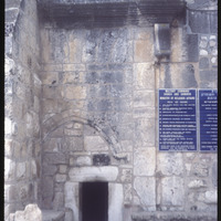 Church of the Nativity entrance; note old door and window blocked up in order to keep Turks out - so small door