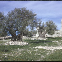 [Minaret and olive trees]