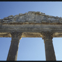Detail of inside of pediment and capitals of the Capitol of Dougga