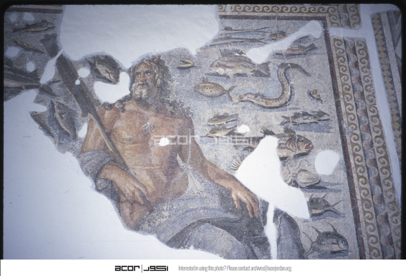 Detail of mosaic depicting Neptune and fish in the Antakya Museum