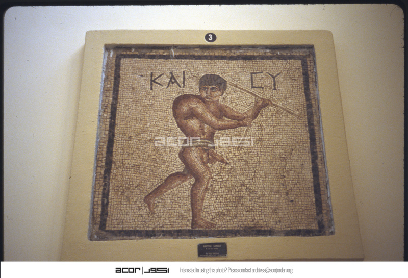 Roman mosaic depicting Tychon with the text "Kaicy"