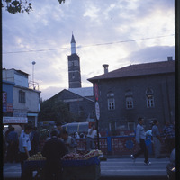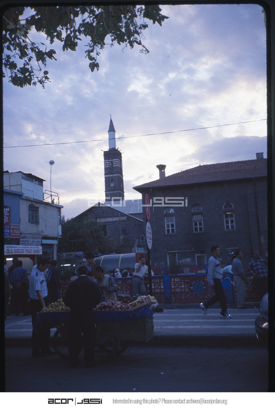 Street scene with Great Mosque of Diyarbakir in background