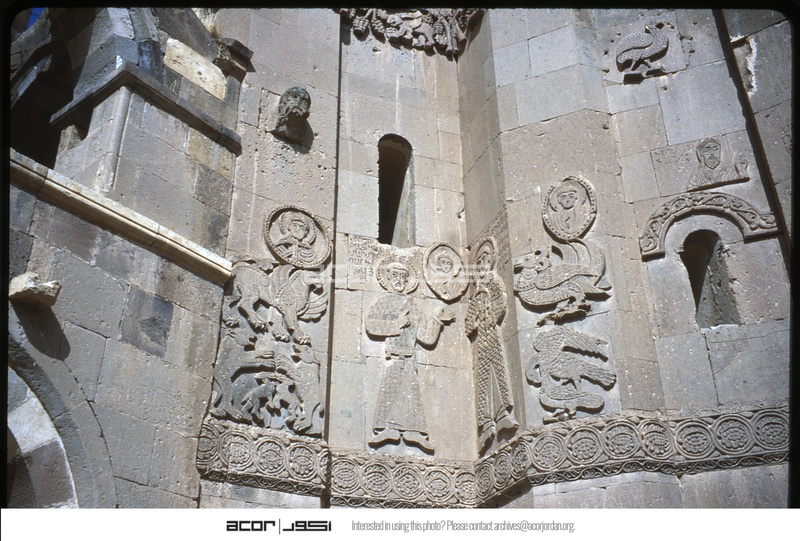 Detail of reliefs depicting Saint Isaac and Hamazasp Artzrouni on Cathedral of the Holy Cross