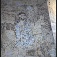 Detail of frescoes depicting resurrection and entrance into Jerusalem