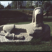 Damaged front of lion relief