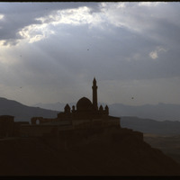 View of Ishak Pasha Palace in silhouette
