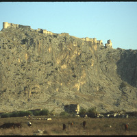 View of Anavarza Castle with grazing cattle in foreground