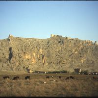View of Anavarza Castle with grazing cattle in foreground