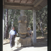 People posing next to Tarḫunz statue