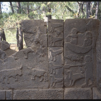Detail of Hittite relief depicting men with animals and birds