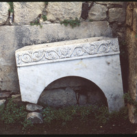 Ruin with decorative relief in courtyard of Church of Saint Nicholas