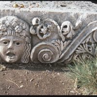 Ruin with relief of face and decoration