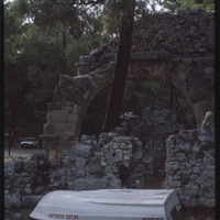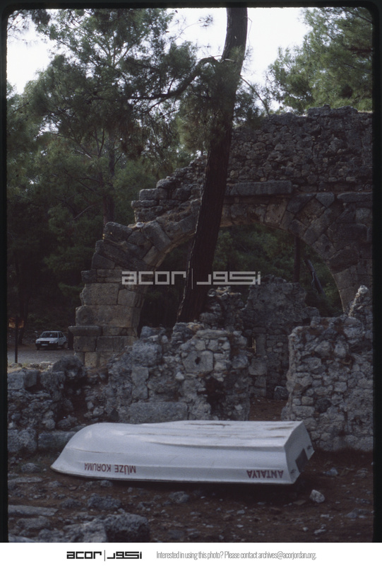 Overturned boat and ruins of Phaselis aqueduct