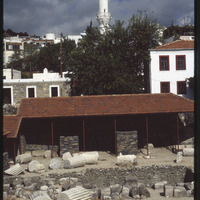 Mausoleum at Halicarnassus ruins with minaret