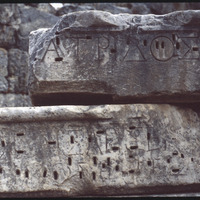 Drilled holes in ruins with inscription in Domitian Temple area
