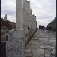 View down Curetes Street with columns and relief