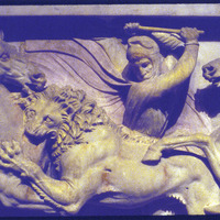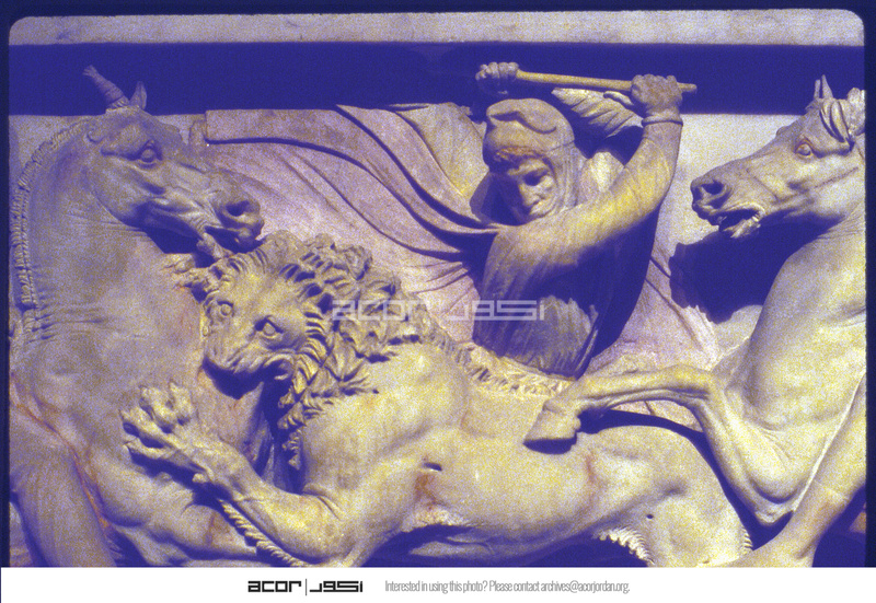 Detail of relief on Lycian sarcophagus of Sidon depicting hunt scene