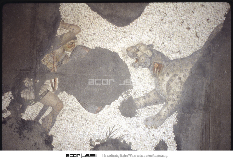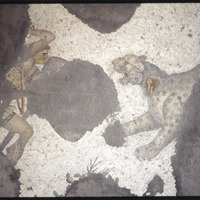 Detail of a mosaic featuring a man fighting a cheetah