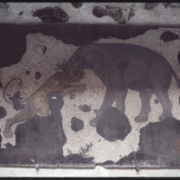 Detail of a mosaic depicting a lion attacking an elephant