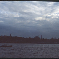 Süleymaniye Mosque and Hagia Sophia silhoutted from Bosphorus